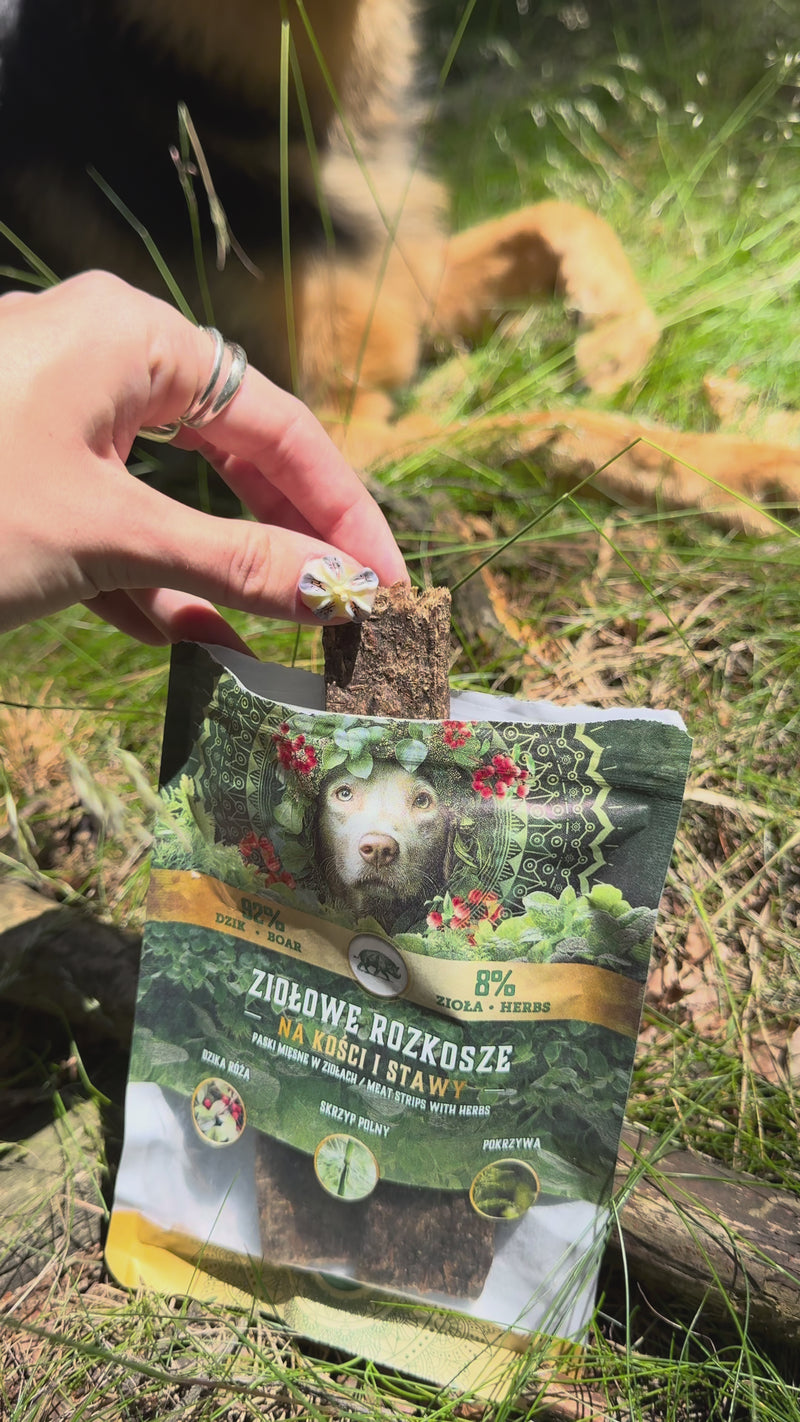 Ziołowe Rozkosze to harmonia natury i smaku, która wspiera dobrostan Twojego psa i zamienia każdy moment w mały, wyjątkowy rytuał bliskości.
