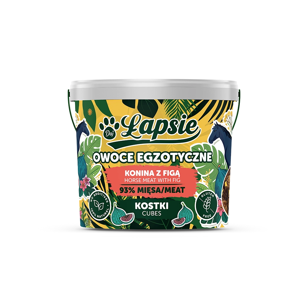 Konina z figą to wariant stworzony z myślą o psach, które lubią mocny, wyrazisty smak. Konina to źródło wysokiej jakości białka i żelaza, a figa dodaje całości lekko słodkiej, charakterystycznej nuty, która wyróżnia ten przysmak na tle innych.