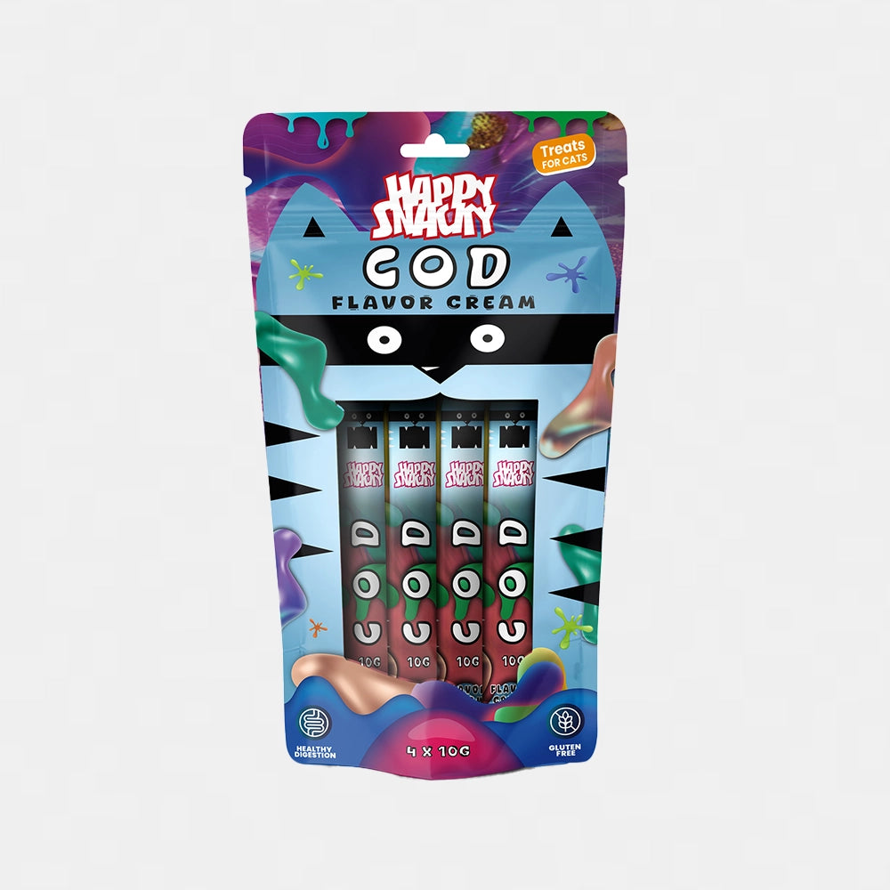 COD Flavor Cream to kremowy przysmak dla kota w tubce, oparty na połączeniu dorsza i kurczaka. Delikatna konsystencja i wysoka wilgotność zachęcają do lizania. Dodatek witamin, minerałów i prebiotyków wspiera codzienną dietę kota. Idealny jako nagroda, rytuał bliskości lub smakowity topper na karmę.