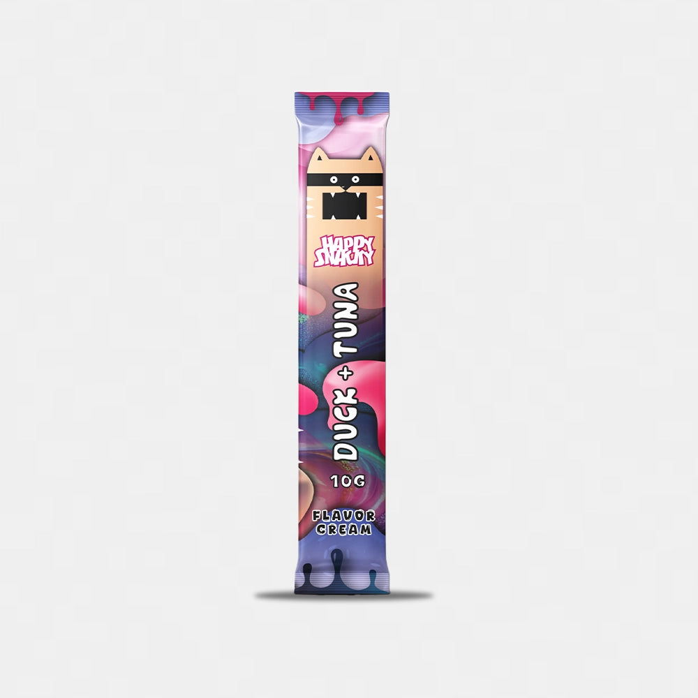 DUCK+TUNA Flavor Cream kremowy przysmak dla kota w tubce, łączący mięso z kaczki i aromatycznego tuńczyka. Gładka konsystencja ułatwia podawanie, a dodatek witamin i minerałów wspiera codzienną dietę kota. Idealny jako nagroda, urozmaicenie posiłku lub chwila czystej przyjemności.