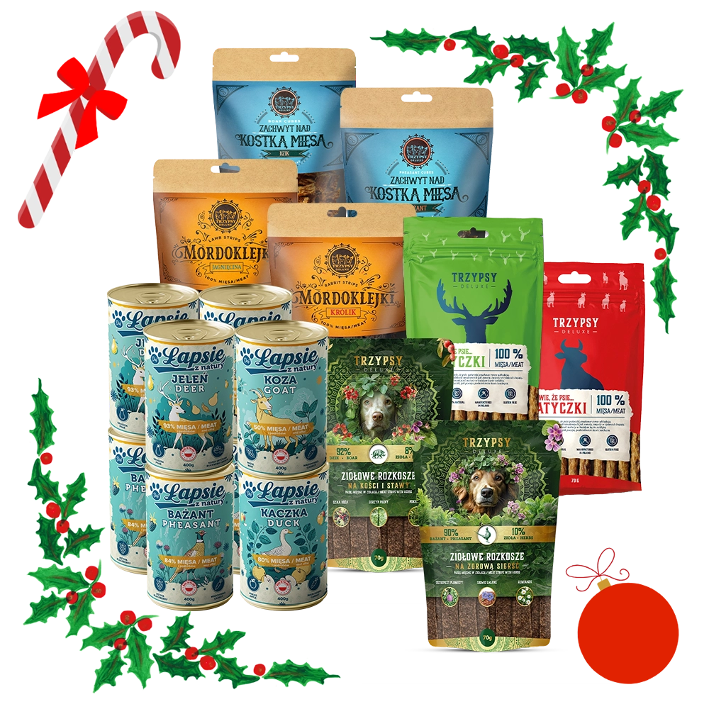 Zrób prezent swojemu psu na Święta! Ten zestaw to gotowy, pachnący radością upominek pełen ulubionych smaków.