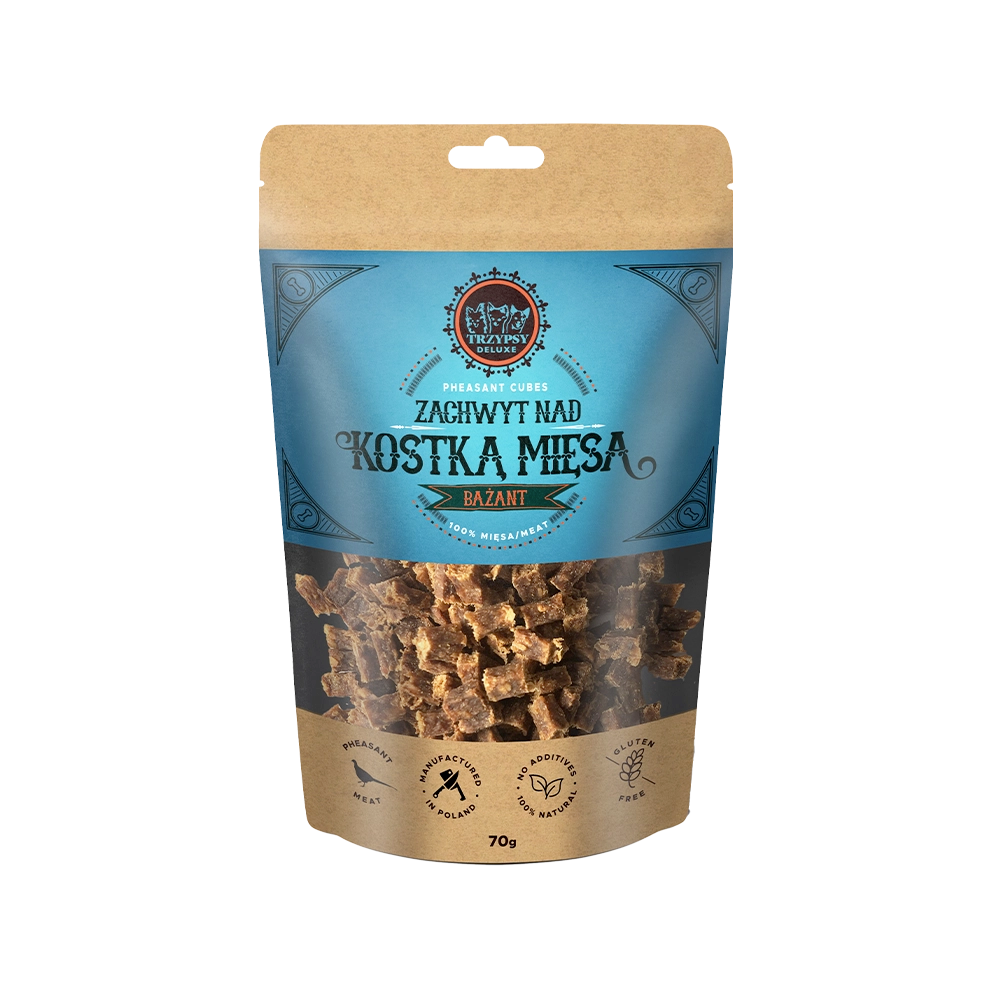 TRZYPSY DELUXE Meat Cube is a natural and healthy delicacy in the form of small cubes made of 100% meat . Careful selection of selected meats and a gentle drying process provide an exceptional feast for the most demanding pets. Contains no preservatives or dyes. It is ideal as a reward.
