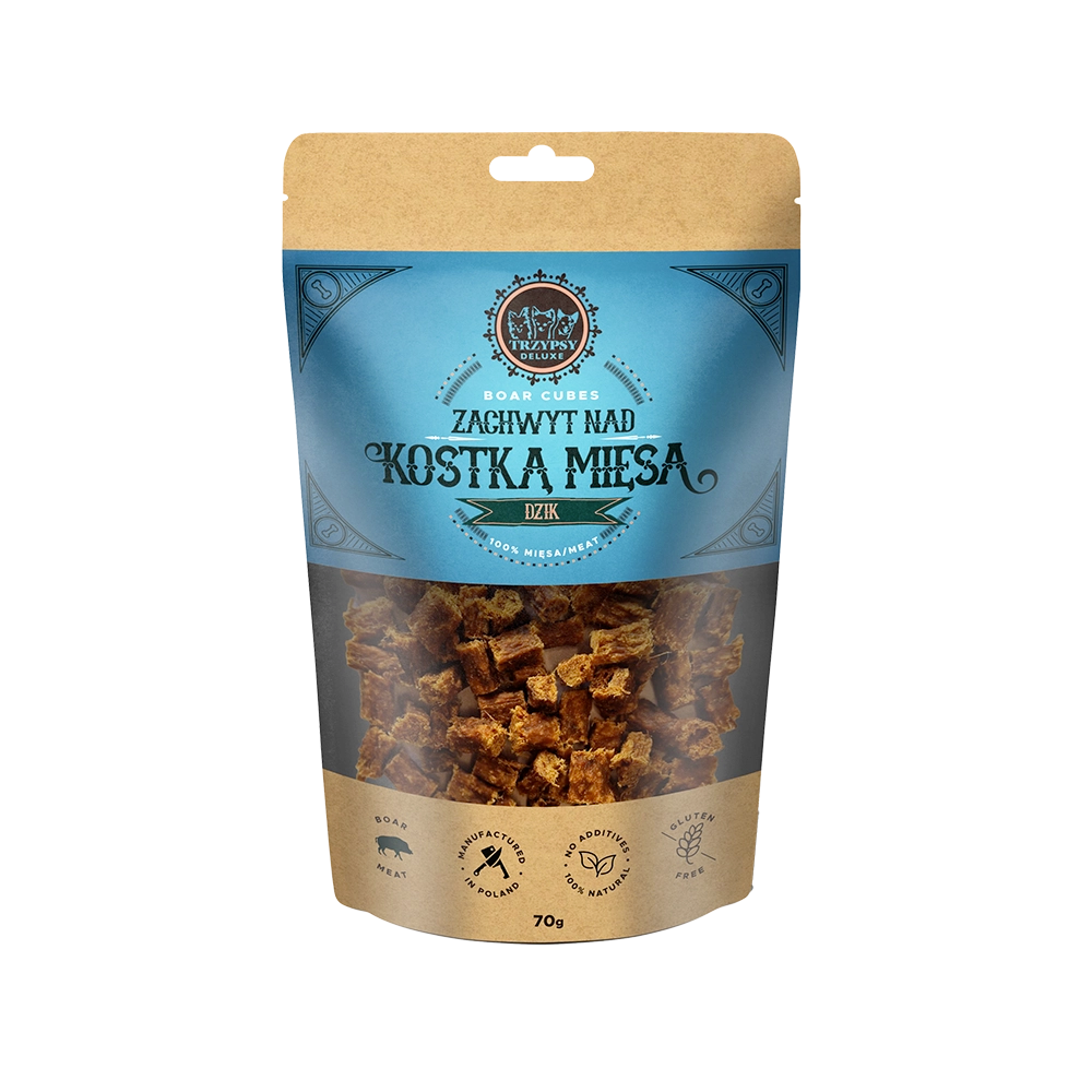 TRZYPSY DELUXE Delight Over Meat Cubes is a natural and healthy delicacy in the form of small cubes made of 100% meat . Careful selection of selected meats and a gentle drying process provide an exceptional feast for the most demanding pets.