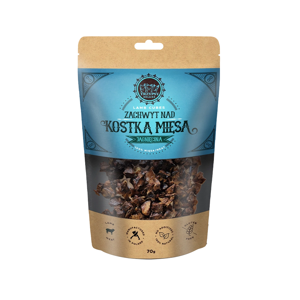 TRZYPSY DELUXE Delight Over Meat Cubes is a natural and healthy delicacy in the form of small cubes made of 100% meat . Careful selection of selected meats and a gentle drying process provide an exceptional feast for the most demanding pets.