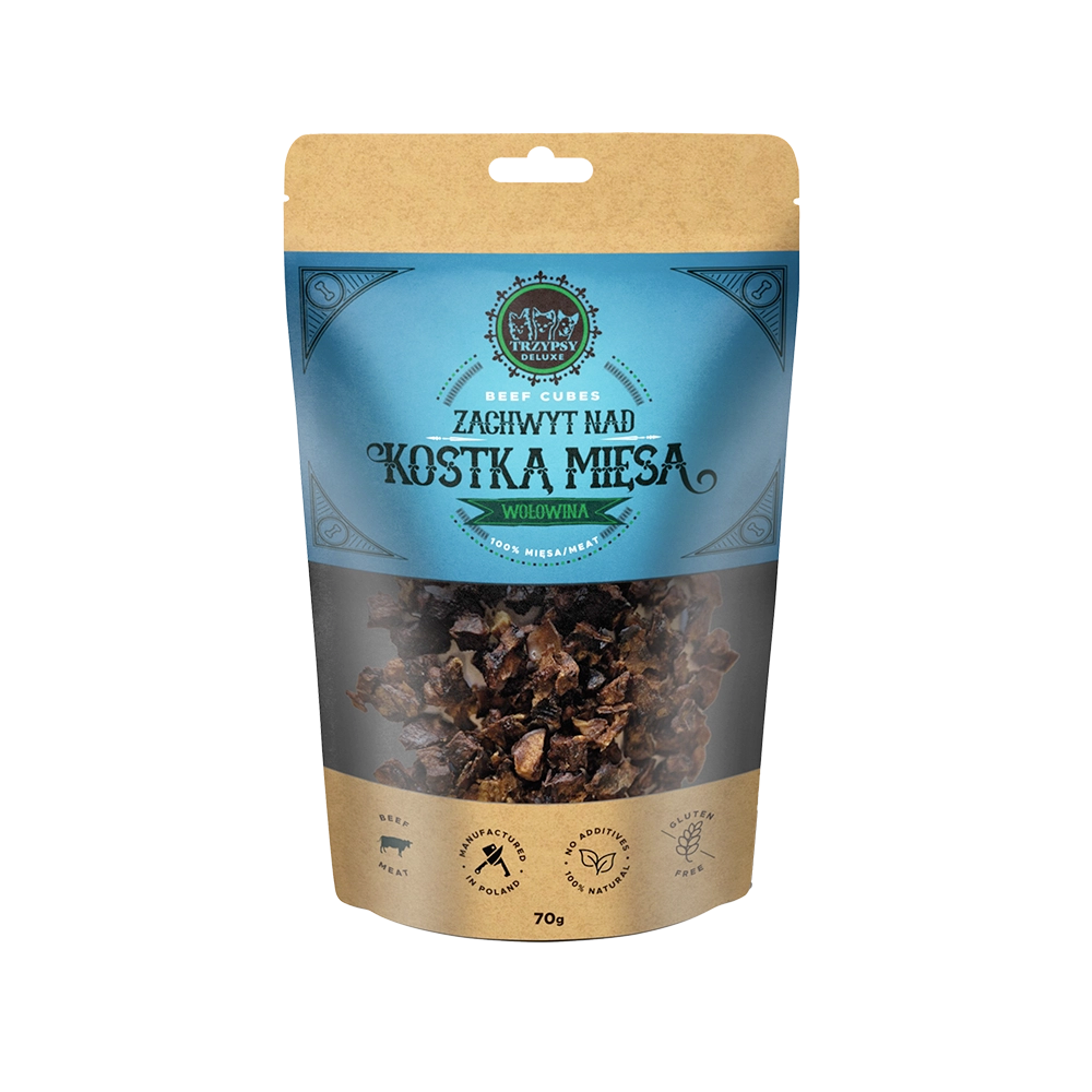 TRZYPSY DELUXE Delight Over Meat Cubes is a natural and healthy delicacy in the form of small cubes made of 100% meat . Careful selection of selected meats and a gentle drying process provide an exceptional feast for the most demanding pets.