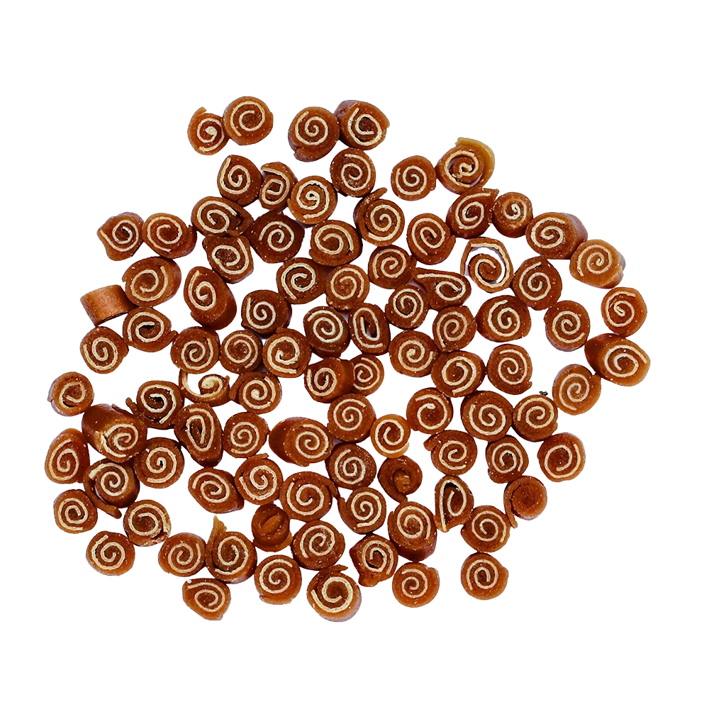 Miękkie roladki z królika to delikatny, aromatyczny przysmak o miękkiej konsystencji, idealny dla psów w każdym wieku. Dzięki niewielkiemu rozmiarowi i średnicy około 1 cm są łatwe do gryzienia i doskonale sprawdzą się jako smaczna przekąska między posiłkami.