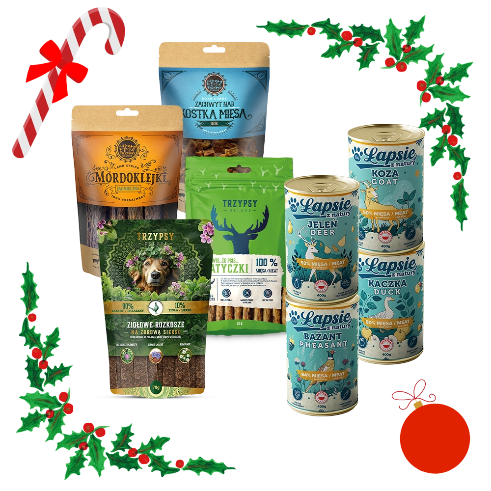 Zrób prezent swojemu psu na Święta! Ten zestaw to gotowy, pachnący radością upominek pełen ulubionych smaków.